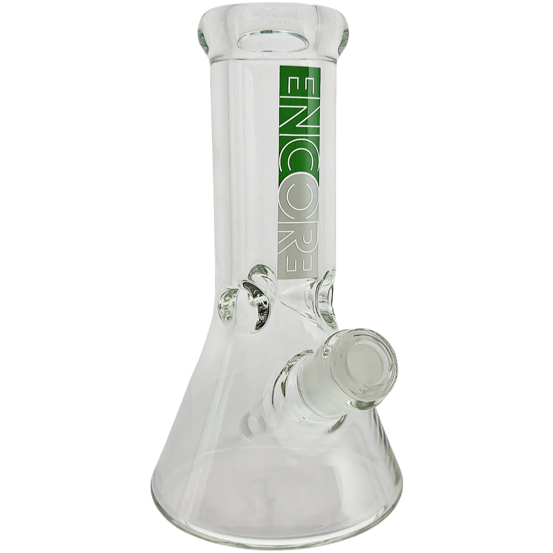 The 8″ Encore Decal Thick Beaker is a compact, heavy-wall glass bong built for people who want a true daily driver that can actually take some knocks. At 8 inches (203mm) tall with stout 7mm glass, it hits like a full-size beaker but still tucks neatly on a desk or side table. If you like cold, clean rips without babying your glass, this little tank is the move.