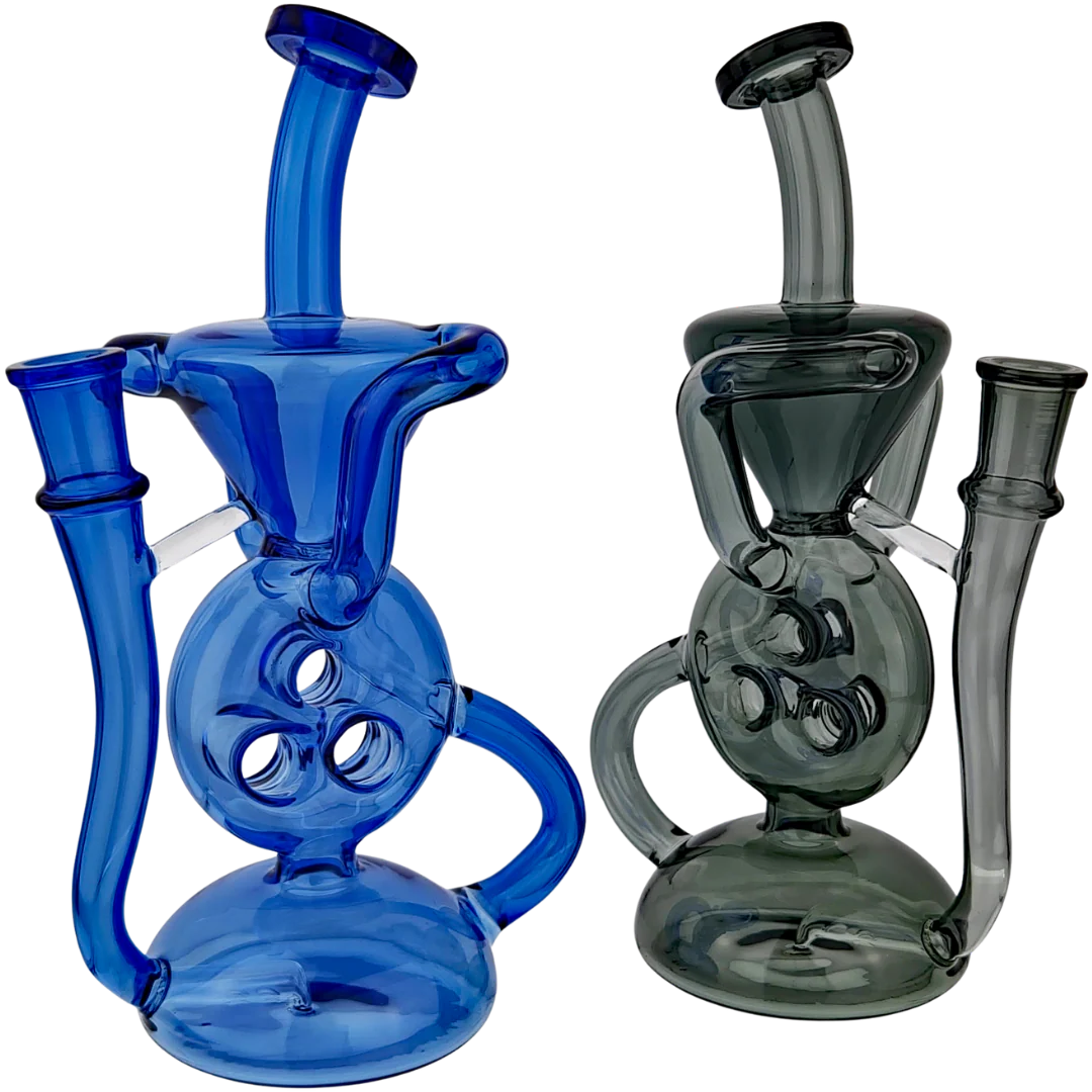 If you've been shopping for dab rigs, you've probably seen "waffle recycler" thrown around and wondered what actually makes one different from a standard rig. The difference is significant and worth understanding, because a proper waffle recycler fundamentally changes how your dabs taste and feel. The waffle design in the percolator creates more surface area for water filtration compared to simpler percolators, and the recycling chamber means water and vapor circulate continuously rather than just sitting in one chamber. We've tested this rig alongside basic setups, and the flavor difference is genuinely noticeable, not a subtle marketing pitch. The 8.5 inch size keeps it portable while still being large enough that the recycling system actually functions at full capacity. The color options (Blue and Smoke Gray) are genuinely appealing, with full color glass throughout rather than just a tinted rim or accent.